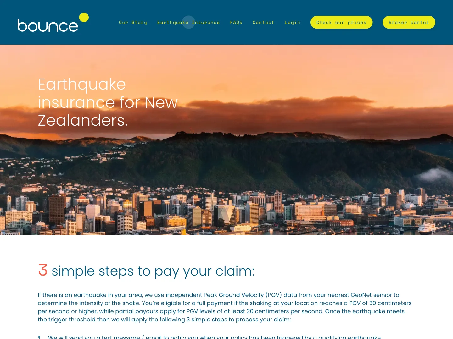 Refreshed the website for Bounce, a New Zealand earthquake insurance company, implementing updated branding and improving design and usability.